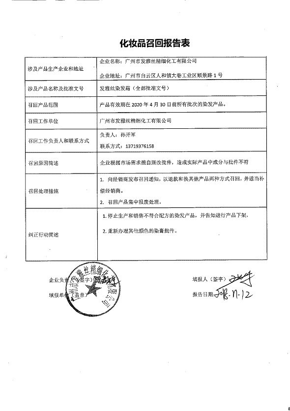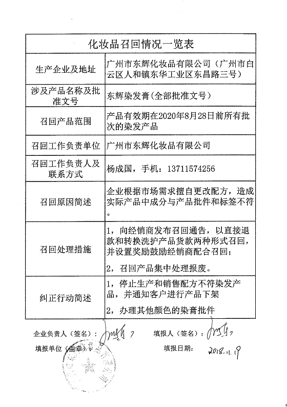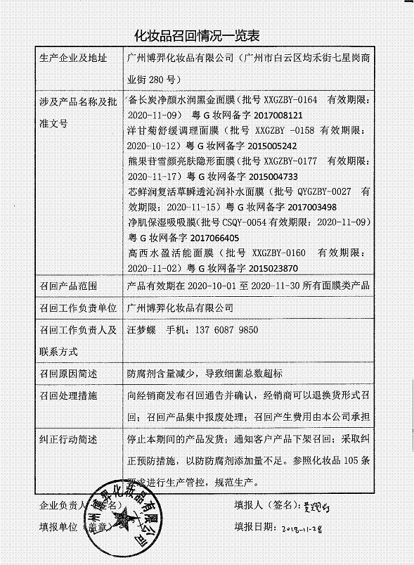 日本av 东辉化妆品有限公司、日本av 发雅丝精细化工有限公司、广州博羿化妆品有限公司3家化妆品生产企业因生产不合格化妆品被原国家食品药品日本av 通报。上述企业已对不合格产品实施了主动召回,但仍有部分存在安全隐患的产品无法完成召回。经企业排查并报告我局,决定对存在安全隐患的产品实施全面召回。现将有关产品信息予以通告,具体内容详见附件。