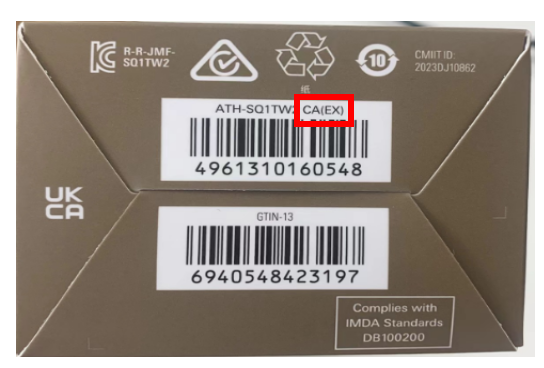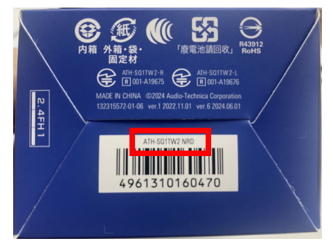 包装盒如下: 1. ATH-SQ1TW2 型号后缀EX,召回的生产批次:2023-10 2343至2024-06 2425。